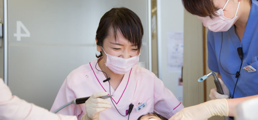 担当患者さんの口腔内の経過を追っていくことで改善されていることがわかり、やりがいや喜びを感じることができます。専用ユニットでのケア業務で、落ち着いて患者さんとの会話を楽しみながら集中して施術もできます。